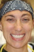 Treatment: To avoid making the two front teeth extremely wide, porcelain veneers and crowns were placed on the front four teeth. This allowed us to fill the space and maintain natural dimensions.